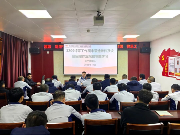 隨著3209工作面鋪網工作順利完成,3209綜采工作面末采回撤工作于11月15日正式拉開帷幕。此次末采回撤任務不僅是生產準備隊2025年“三安三撤”工作的收官之戰,更是守住年底安全防線、確保全年生產目標圓滿完成的“關鍵一戰”。馮家塔運營生產準備隊全體職工以“守好年底安全關、打贏末采回撤攻堅戰”為主線,嚴抓安全管理、精細組織施工、統籌推進任務,誓要安全高效啃下這塊“硬骨頭”。