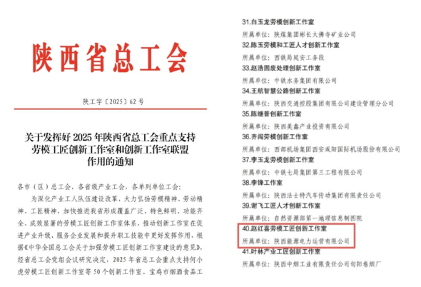 近日,電力運(yùn)營(yíng)“趙紅喜勞模工匠創(chuàng)新工作室”成功獲評(píng)2025年陜西省總工會(huì)重點(diǎn)支持勞模工匠創(chuàng)新工作室,并獲3萬(wàn)元專項(xiàng)資金支持。