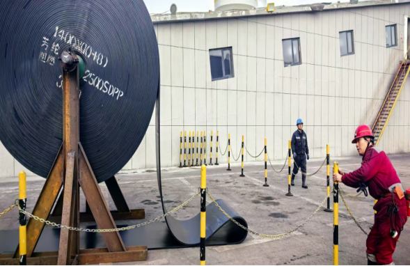 施工期間,礦區(qū)最低氣溫達(dá)零下12攝氏度,寒風(fēng)凜冽。全體施工人員以“保安全、搶進(jìn)度、提質(zhì)量”為目標(biāo),嚴(yán)格執(zhí)行安全技術(shù)措施,有序推進(jìn)展帶、硫化接頭、回收舊帶、鋪設(shè)新帶等關(guān)鍵工序。機(jī)電管理部全程跟班指導(dǎo),緊盯硫化接頭與新帶鋪設(shè)等核心環(huán)節(jié),確保每道工序質(zhì)量達(dá)標(biāo);運(yùn)轉(zhuǎn)隊(duì)人員不畏嚴(yán)寒、協(xié)同作業(yè)、日夜奮戰(zhàn),在確保安全質(zhì)量的前提下,較原計(jì)劃提前一天完成任務(wù)。本次更換的芳綸輸送帶采用直徑直緯編織的特殊材料,相比傳統(tǒng)鋼絲繩芯輸送帶,具有防撕裂性更優(yōu)、抗拉強(qiáng)度高、耐磨性強(qiáng)、重量輕、耐寒耐腐蝕等優(yōu)點(diǎn),投運(yùn)后有助于實(shí)現(xiàn)節(jié)能降耗,提升主運(yùn)系統(tǒng)運(yùn)行穩(wěn)定性與運(yùn)輸效率,對(duì)公司高效穩(wěn)定發(fā)展具有重要意義。