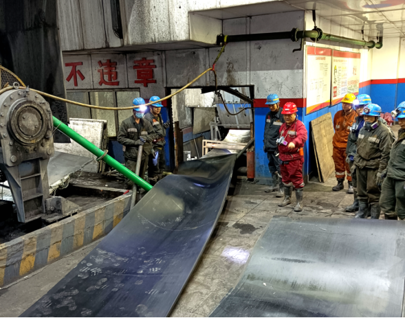 主運(yùn)輸系統(tǒng)是礦井生產(chǎn)的“大動(dòng)脈”,原101帶式輸送機(jī)使用的鋼絲繩芯阻燃輸送帶因長(zhǎng)期高負(fù)荷運(yùn)行,出現(xiàn)磨損、老化等隱患,為確保主運(yùn)輸系統(tǒng)安全穩(wěn)定運(yùn)行,公司領(lǐng)導(dǎo)高度重視,針對(duì)年末生產(chǎn)任務(wù)緊、冬季施工環(huán)境惡劣等情況,提前組織機(jī)電管理部與運(yùn)轉(zhuǎn)隊(duì)編制輸送帶更換方案、落實(shí)工具、明確節(jié)點(diǎn)、責(zé)任到人,并制定周密安全保障措施。