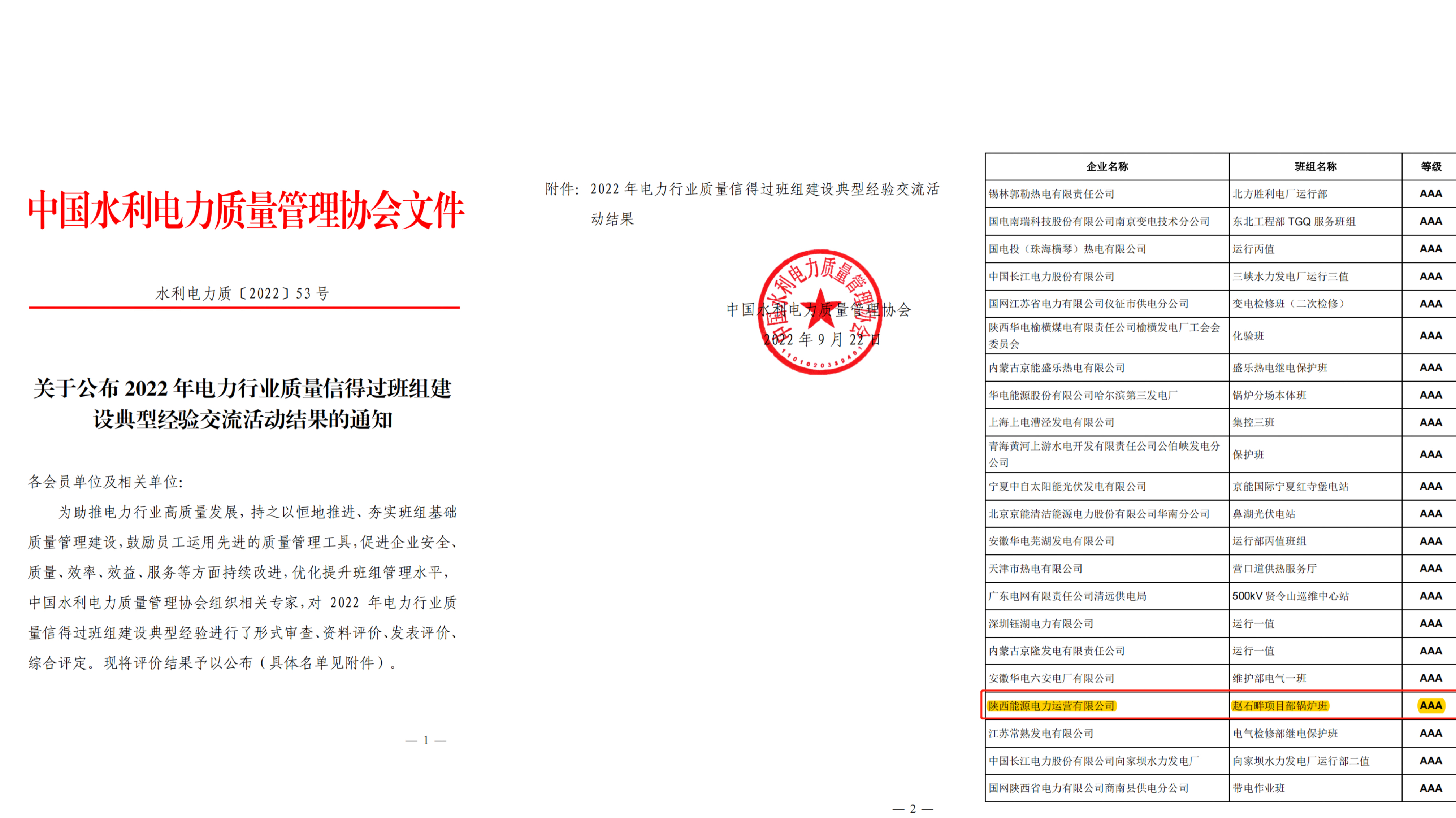 日前,電力運營公司趙石畔項目部鍋爐班從全國范圍內發電、供電、電建、勘測設計及制造行業等單位近300個班組中脫穎而出,被中國水利電力質量管理協會評為AAA級質量信得過班組。